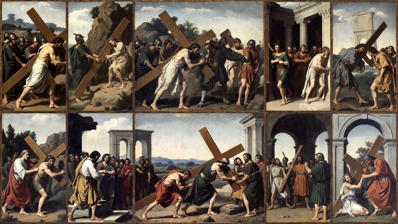 5. POSTAJA: – ŠIMUN CIRENAC POMAŽE ISUSU NOSITI KRIŽ