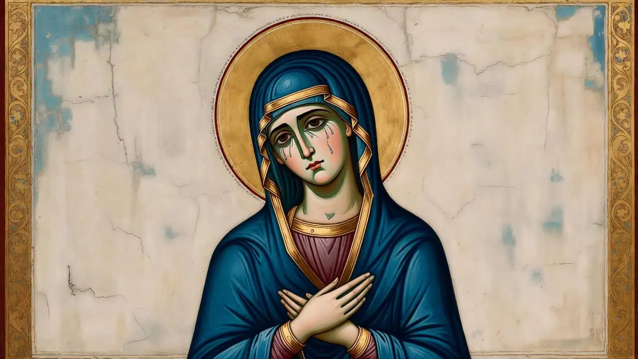Umetnička slika Majke Božje od Suza s molitvom i vjerom.
