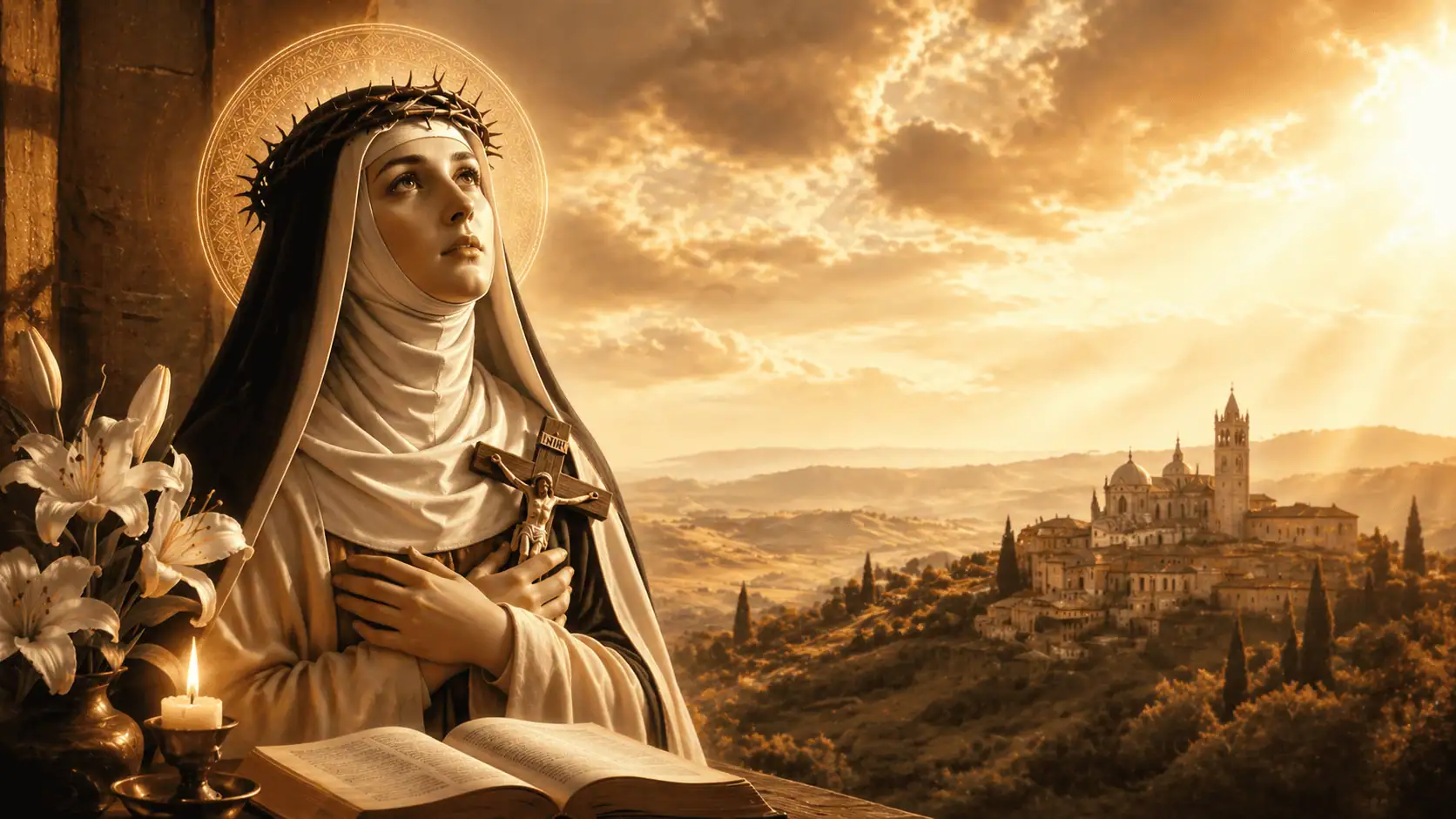 Sveta Katarino Sijenska, ljubljena zaručnice Kristova, ti koju je Bog obasuo svjetlom Duha Svetoga da budeš savjetnica vjere i istine papama, biskupima i moćnicima svoga vremena, izmoli i danas za pastire Crkve mudrost da vjerno vode Božji narod, ljubav da iscjeljuju rane današnjeg čovjeka, i hrabrost da bez straha svjedoče Istinu.
