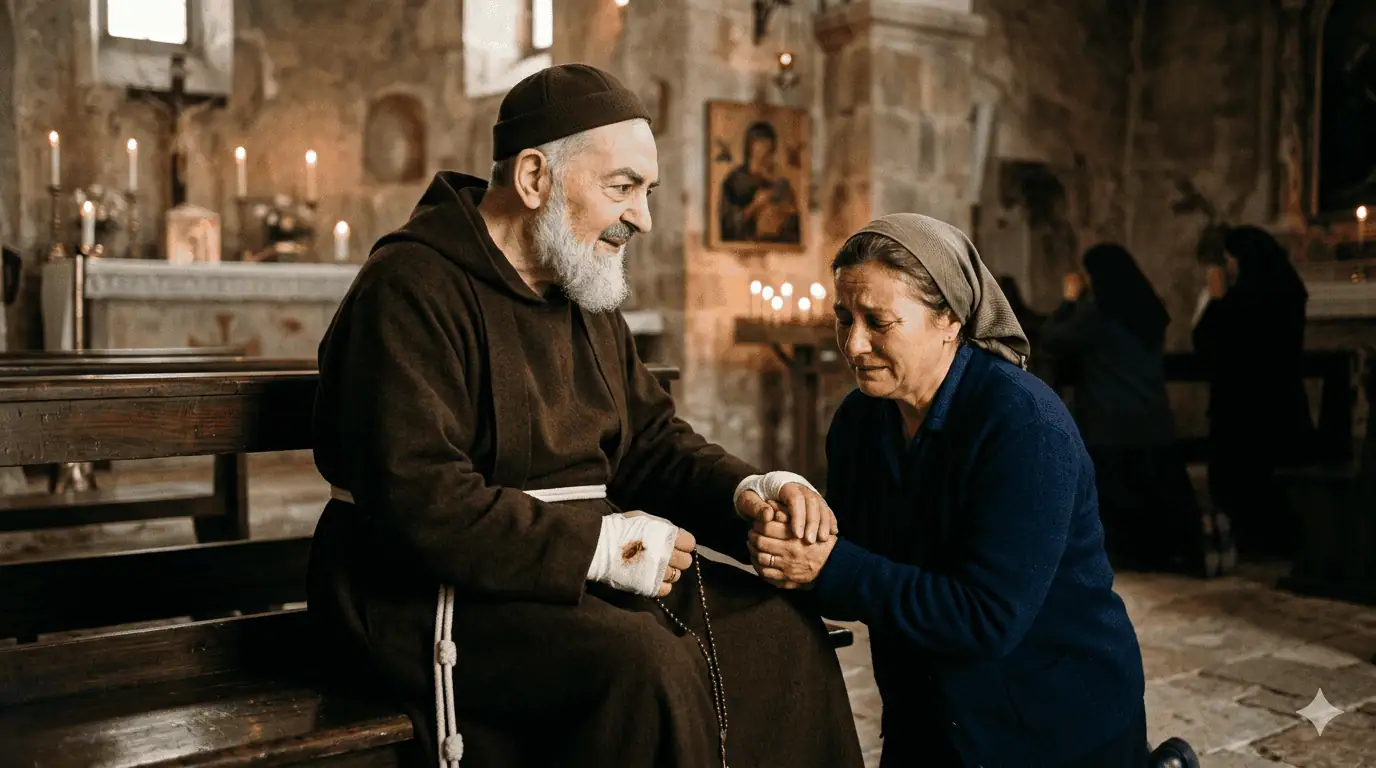 U tom trenutku, kada su se sva zemaljska vrata zatvorila, ona je odlučila pokucati na nebeska. Očajna, ali u srcu neobjašnjivo snažna, potražila je duhovnu pomoć kod oca Pija, mistika iz San Giovanni Rotonda, za kojeg se govorilo da čita duše i da su mu molitve izravni put do Božjeg prijestolja.